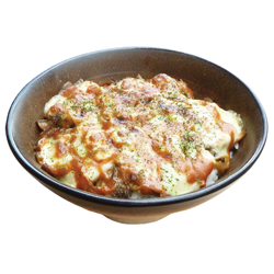 Язык говяжий, шампиньоны, грибы «Вешенки», лук, рис, зелень, сыр «Моцарелла», соус «Донбури», соус «Кацу сандо».