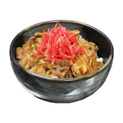Говядина, лук, рис, маринованный имбирь, соус «Донбури».