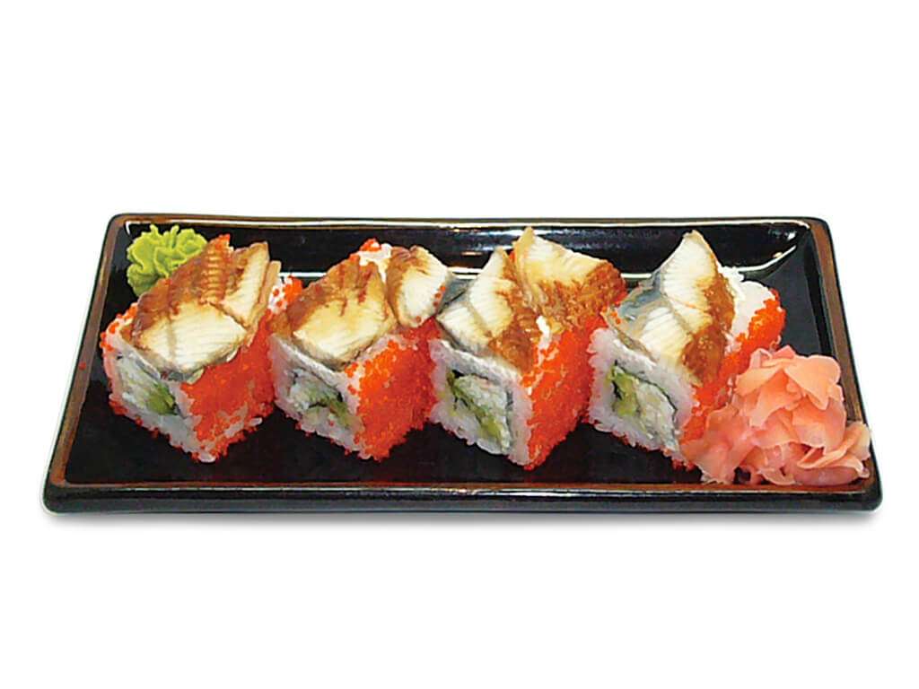 Мясо краба, угорь, огурец, тобико, сыр сливочный, майонез, соус «Унаги».